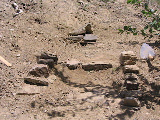 Due to the early record monsoon and then the rainy and windy fall and then the very snowy winter--plus illness in the contractor's family--they finally got out here Thursday. What is it Robbie Burns said about "the best laid plans"...?
