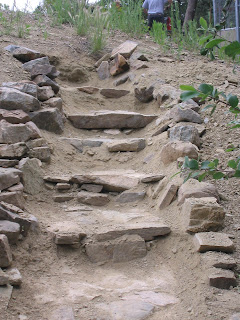 It is taking a bit longer toward the top because the hill is steeper there and it takes longer to clear the dirt that I have to dig out to make a step.